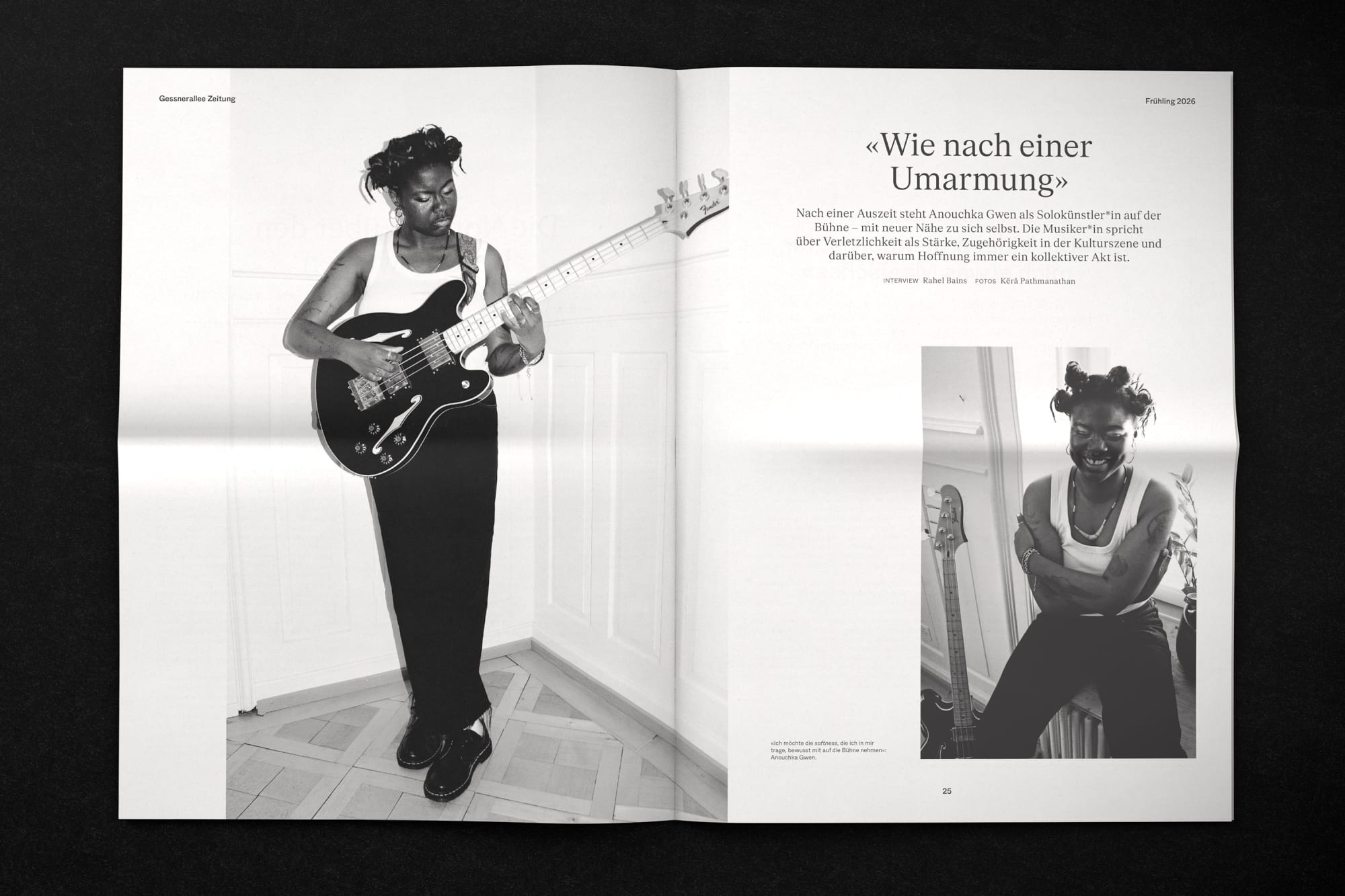 Wir starten in die Spielzeit 2025/26 und damit in das zweite Jahr der Zeitung der Gessnerallee. Ein Schwerpunkt bleibt für uns die vertiefte Auseinandersetzung mit Ästhetiken der Barrierefreiheit und dem Anspruch, behinderten und Tauben/gehörlosen Künstler*innen und Gäst*innen die Gessnerallee so angenehm wie möglich zu gestalten. Das macht sehr viel Spass, ist aber nicht immer einfach. Die sehbehinderte Künstlerin und Behindertenrechtsaktivistin Fia Neises schreibt in «Ein Gedanke zu Theater»: «Wenn wir eine Lösung für etwas eigentlich Unmögliches suchen … dann hält auch hier das Theater her.» Gleichzeitig hätten Theaterinstitutionen noch viel zu lernen. (Auszug aus dem Editorial)
